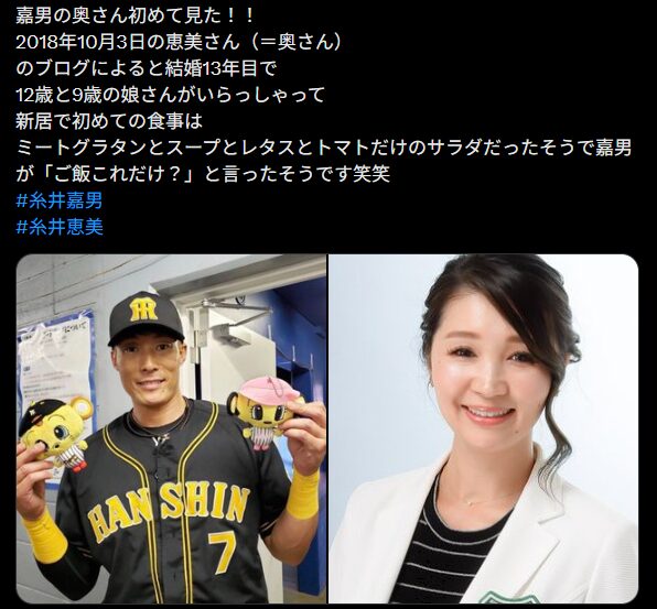 • 糸井嘉男さんは2005年に一般女性・佐藤恵美さんと結婚し、家庭を築いてきた。